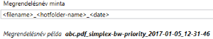 A Megrendelésnév minta teszőlegesen módosítható. Az alapértelmezett értékként felajánlott minta tartalmazza azt a három értéket, ami dinamikusan kerül feltöltésre:
